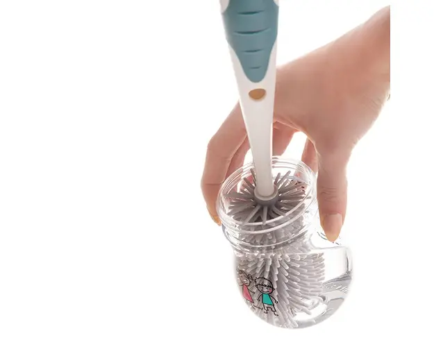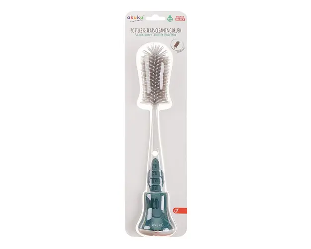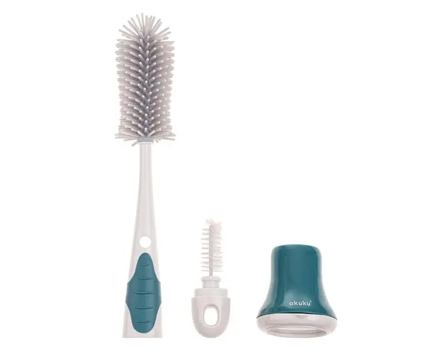 Perie pentru biberoane Akuku din silicon cu suport Verde