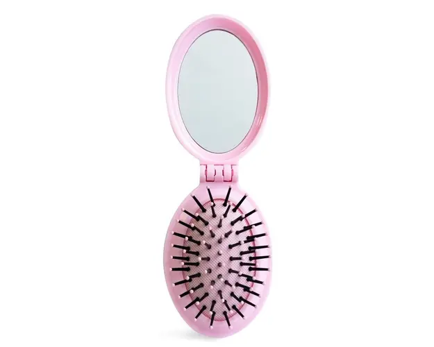 Perie pliabila cu oglinda pastel IDC Institute 18301RB roz