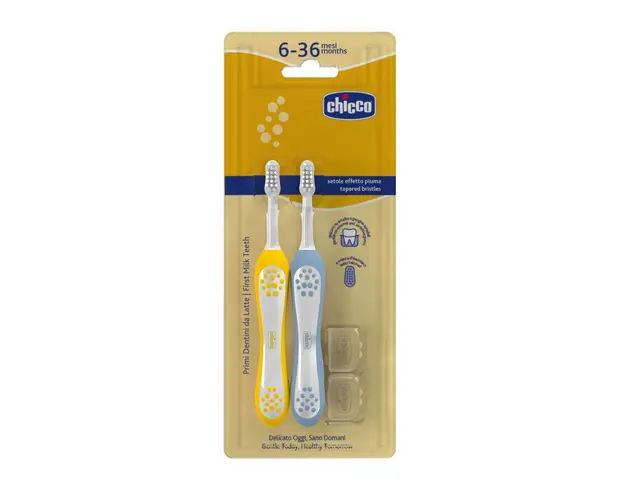 Periuta de dinti copii Chicco set 2 bucati indigo + mustar 6-36 luni