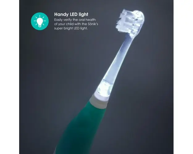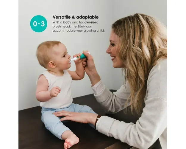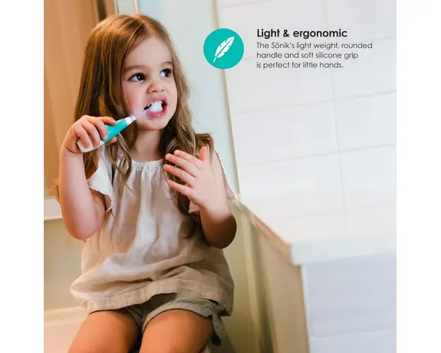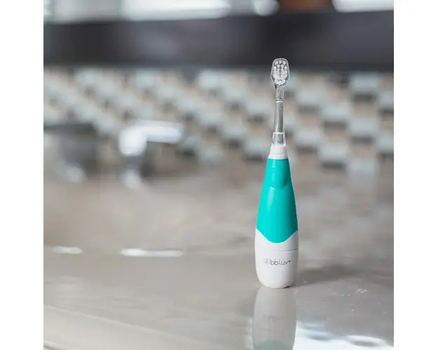 Distreaza-te invatandu-ti copilul sa se spele pe dinti cu Sonik, periuta de dinti delicata cu ultrasunete.Modul perfect de a insufla o buna igiena orala din timp si de a preveni cariile mai tarziu.nbs Produsul cu denumirea Periuta de dinti electrica Bbluv Sonik cu maner din silicon albastru face parte din brandul Bebumi, se afla in categoria Igiena si ingrijire si subcategoria