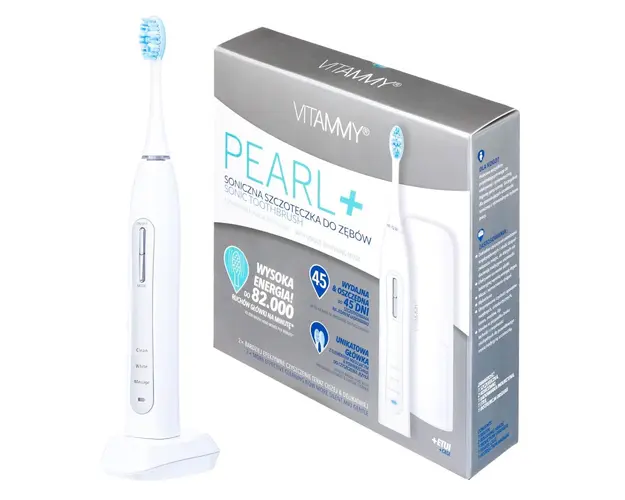 Caracteristici- 82.000 de vibratiimin- Timer 2 min- Vibratii sonice- Incarcator cu suport- 3 moduri de periaj- Indicator baterie descarcata- 2 capete incluse in pachetCu periuta electrica de dinti VIT Produsul cu denumirea Periuta de dinti electrica Vitammy Pearl+ 82000 vibratiimin alb face parte din brandul Vitamina g, se afla in categoria Igiena si ingrijire si subcategoria