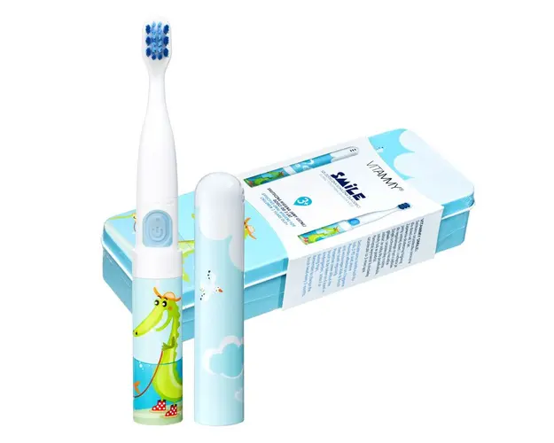 PERIUTA DE DINTI ELECTRICA VITAMMY SMILE, PENTRU COPII 3 +, CUTIE TRAVELCaracteristici- Numar de vibratiimin 8000-14000- Vibratii sonice- Peri moi si delicati- 2 moduri de periaj normal si delicat- 2 Produsul cu denumirea Periuta de dinti electrica Vitammy Smile animatie crocodil face parte din brandul Vitamina g, se afla in categoria Igiena si ingrijire si subcategoria