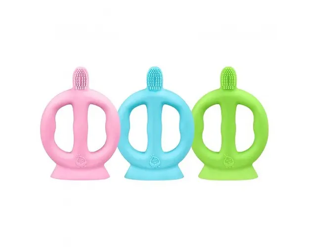 Periuta de dinti cu peri din silicon si manere Green Sprouts Aqua