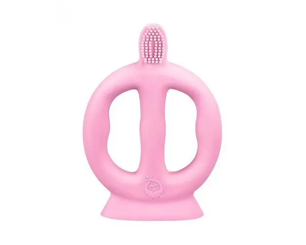 Periuta de dinti cu peri din silicon si manere Green Sprouts Pink