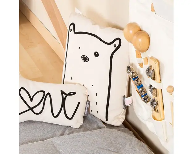 Perna decorativa Childhome 25x28cm, UrsAceasta perna decorativa de la Childhome este realizata din panza de calitate si prezinta desene vesele si dragute pe ambele parti.Datorita culorii sale neutre, Produsul cu denumirea Perna decorativa 25x28cm Urs Childhome face parte din brandul Chipolino, se afla in categoria Costume carnaval copii si subcategoria
