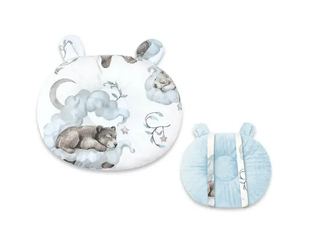 bull O perna profilata cu urechi de ursulet conceputa pentru a sustine modelarea corecta a capului bebelusului.bull Profilarea speciala previne sindromul capului plat si are o functie anti-soc.bull De Produsul cu denumirea Perna pentru bebelusi Qmini multifunctionala ursulet Minky Teddy Bear and Friends Blue face parte din brandul Minibo, se afla in categoria Costume carnaval copii si subcategoria