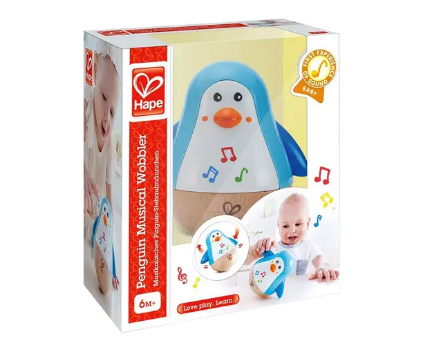 Саrасtеrіѕtісi Pinguin muzical din lemn Hape: Hape este unul dintre cei mai mari producatori de jucarii de lemn din lume Prin urmare, folosesc numai materiale naturale de inalta calitate si vopsele inofensive pe baza de apa Cu jucaria muzicala, copiii se vor bucura de sunetele linistitoare ale pinguinului Apasati ciocul pinguinului si acesta va incepe sa se clatine si sa emita zgomote, captivand atentia celui mic Promoveaza dezvoltarea simtului vederii si auzului la bebelusi Jucaria emite sunete linistitoare, are un design distractiv si vesel in culori vii Potrivit pentru copii peste 6 luni Dimensiuni: 12.6 x 11.2 x 9 cm Produsul cu denumirea Pinguin muzical din lemn Hape face parte din brandul Haxe, se afla in categoria Jucarii magnetice si subcategoria