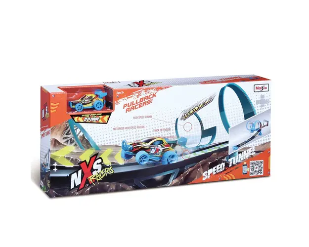 Pista cu rampa de lansare si o masinuta cu pull back Maisto NXS Racers