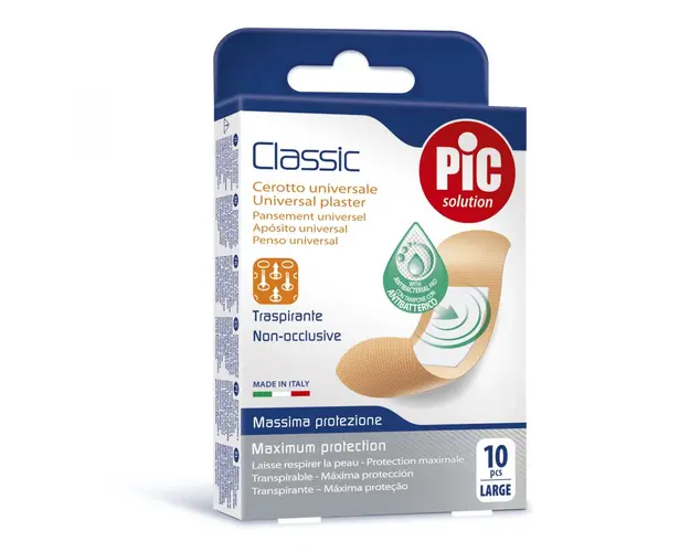 Plasturi universali Pic Solution Classic 25x72mm cu solutie antibacteriana 10 bucaticutie