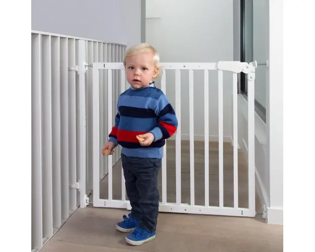 Poarta de siguranta lemn Maestro 73.5-104 cm alb Childhome