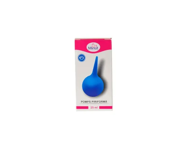 Pompa piriforma Minut este utilizat atacirct pentru copii, cacirct i pentru aduli. Cu ajutorul acesteia se cur zona auricular isau cile respiratorii.Para auriculara ar trebui folosita doar de personal Produsul cu denumirea Pompa piriforma nr.3 Minut 25 ml face parte din brandul Milan, se afla in categoria Igiena si ingrijire si subcategoria