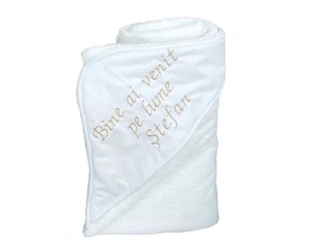 Prosop alb pentru bebelusi Personalizat cu capison 80x80 cm