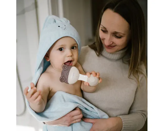 Prosop baie bambus cu gluga 100 x 100 cm Babyono albastru