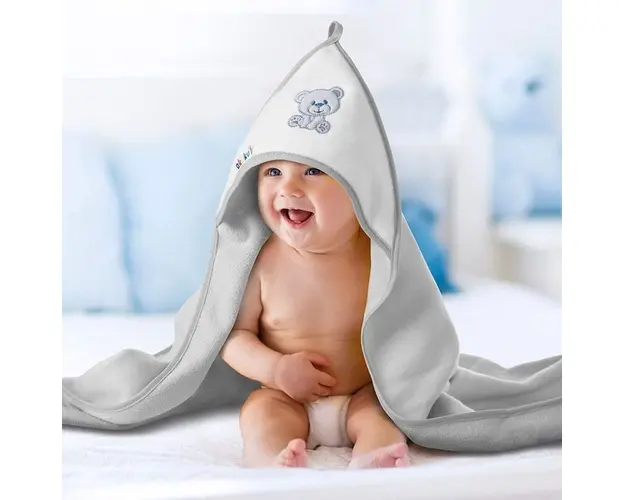 Prosop de baie cu gluga Akuku 100x100 cm bumbac Urs gri