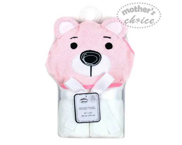 Prosop bebe cu gluga din bumbac ursulet roz