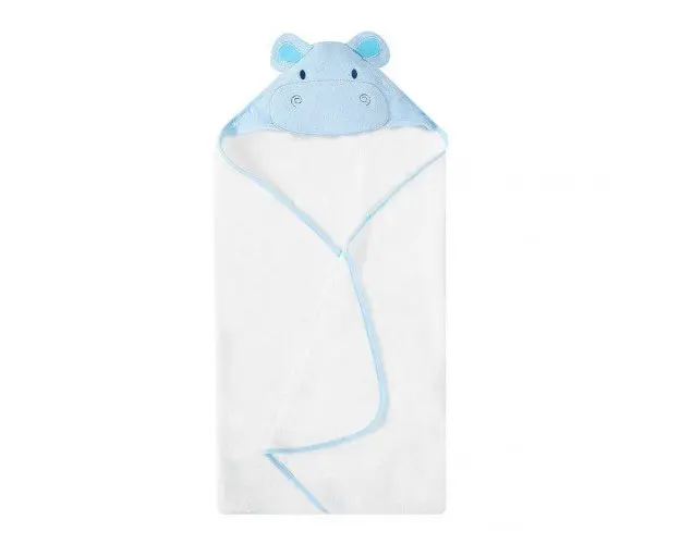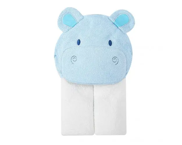 Prosop cu gluga din bumbac pentru bebelusi Hipopotam Bleu 84x84cm