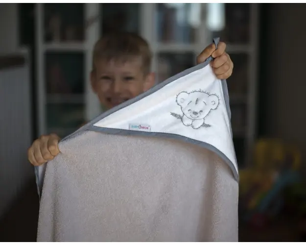 Prosop mare cu gluga din bumbac 100x100 cm BabyMam Teddy Bear Grey