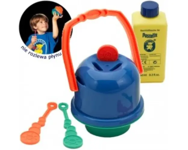 Pustefix - Galetusa NO SPILL NOU! Galetusa din care nu se varsa solutia!Insotita de3 inele de suflat balonase de sapun si 250ml de solutie Pustefix non-toxica pentru balonase de sapun. Practica si sigura -ai libertate de miscare si solutia nu se varsa! De luat la orice petrecere, in parc, in curte! Recomandata si organizatorilor de petreceri si de evenimente. Solutia Pustefix pentru baloane de sapun inclusa in set este fabricata in Germania, este non-toxica, nu lasa pete, are termen de valabilitate nelimitat si se foloseste nediluata. Produsul cu denumirea Pustefix Galetusa antivarsare NO SPILL face parte din brandul Pustefix, se afla in categoria Baloane de sapun si subcategoria