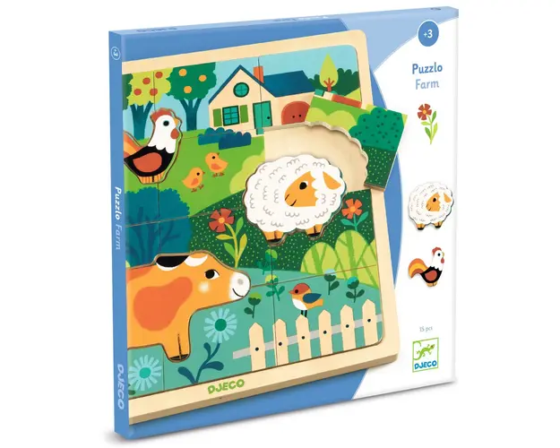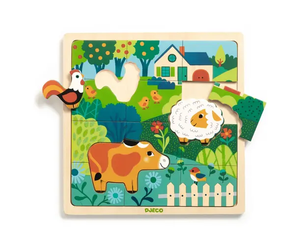 Puzzle din lemn Animale de la ferma, Djeco