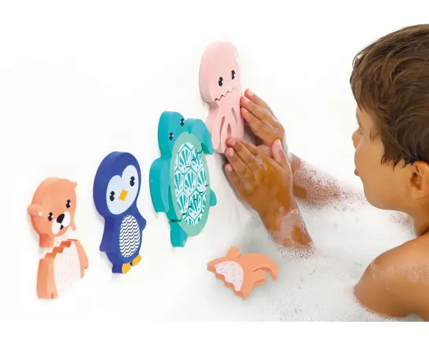 Primul meu puzzle de baieGasiti o broasca testoasa, o caracatita, o vidra si un pinguin pentru distractia din timpul baitei.4 animale mici din spuma, foarte colorate, care plutesc si adera perfect pe Produsul cu denumirea Puzzle din spuma Ludi Animalute face parte din brandul Ludi, se afla in categoria Igiena si ingrijire si subcategoria
