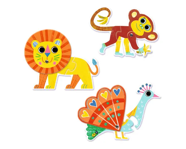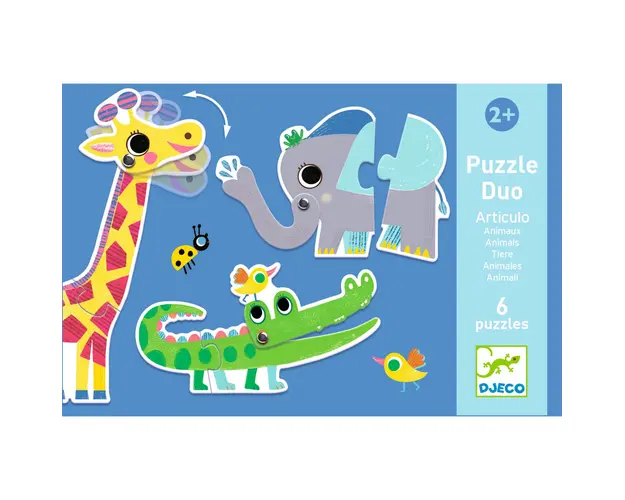Puzzle duo Articulo Animo este un puzzle educational distractiv in care copiii recreeaza un animal si ii dau viata prin miscarea unor parti ale corpului sau: gura crocodilului, bratul maimutei care tine o banana si multe altele! Acest puzzle este ideal pentru varsta de la 2 ani in sus, avand piese mari, usor de prins de manutele mici. Cutia practica, cu snur, poate merge cu tine oriunde! Este o introducere simpla si distractiva in jocurile de potrivire, dezvoltand abilitatile de observare si motorii fine. Puzzle-ul are autocorectie: doar piesele potrivite vor forma un puzzle perfect. Continut: 6 puzzle-uri cu o piesa mobila (12 piese din carton). Confectionat din hartie si carton certificate FSC®. Conform reglementarilor EN71&ASTM. AVERTISMENT: Contraindicat copiilor sub 2 ani, contine piese mici, pericol de sufocare. A se utiliza sub directa supraveghere a unui adult. Produsul cu denumirea Puzzle duo Articulo Animo, Djeco face parte din brandul Recaro, se afla in categoria Lulujo si subcategoria Seturi museline