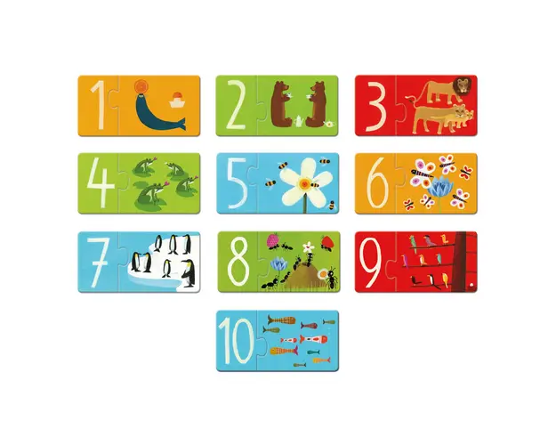 Puzzle duo Djeco Numere este un joc educativ si distractiv, perfect pentru a ajuta copiii sa invete cifrele. Acest puzzle permite celor mici sa potriveasca fiecare figura cu numarul corespunzator de animale, oferind o introducere simpla in jocurile de potrivire si utilizarea numerelor de la 1 la 10. Cu un design ingenios de auto-corectie, fiecare piesa de puzzle se va potrivi doar cu perechea sa, asigurand o experienta de invatare interactiva. Cutia colorata, dotata cu un snur, face ca transportul sa fie usor si convenabil. Continutul include 10 puzzle-uri din 2 piese, fiind recomandat pentru copii cu varsta de peste 2 ani. Puzzle-ul este fabricat din hartie si carton certificate FSC®, asigurand un produs ecologic si sigur pentru cei mici. AVERTISMENT: Contraindicat copiilor sub 2 ani. A se utiliza sub directa supraveghere a unui adult. Producator: Djeco, Franta Produsul cu denumirea Puzzle duo Numere, Djeco face parte din brandul Recaro, se afla in categoria Lulujo si subcategoria Seturi museline