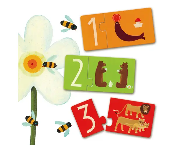 Puzzle duo Djeco Numere este un joc educativ si distractiv, perfect pentru a ajuta copiii sa invete cifrele. Acest puzzle permite celor mici sa potriveasca fiecare figura cu numarul corespunzator de animale, oferind o introducere simpla in jocurile de potrivire si utilizarea numerelor de la 1 la 10. Cu un design ingenios de auto-corectie, fiecare piesa de puzzle se va potrivi doar cu perechea sa, asigurand o experienta de invatare interactiva. Cutia colorata, dotata cu un snur, face ca transportul sa fie usor si convenabil. Continutul include 10 puzzle-uri din 2 piese, fiind recomandat pentru copii cu varsta de peste 2 ani. Puzzle-ul este fabricat din hartie si carton certificate FSC®, asigurand un produs ecologic si sigur pentru cei mici. AVERTISMENT: Contraindicat copiilor sub 2 ani. A se utiliza sub directa supraveghere a unui adult. Producator: Djeco, Franta Produsul cu denumirea Puzzle duo Numere, Djeco face parte din brandul Recaro, se afla in categoria Lulujo si subcategoria Seturi museline