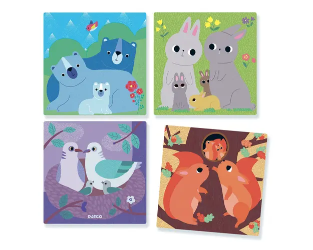 Cuburi cu animale din padure. Un alt fel de puzzle. Fiecare imagine dintre cele 4 este formata din 9 cuburi care trebuie asezate corect pe tijele verticale pentru a forma imaginea dorita. Cuburile sunt din lemn, ilustrate diferit pe fiecare latura, astfel ca trebuie gasita partea potrivita pentru fiecare ilustratie.Varsta recomandata: +3 ani.AVERTISMENT: Contraindicat copiilor sub 3 ani. Contine piese mici care pot fi inghitite.Producator: Djeco, Franta Produsul cu denumirea Puzzle vertical cu cuburi Puzz-Up Forest, Djeco face parte din brandul Recaro, se afla in categoria Produse noi si subcategoria Raspundel istetel