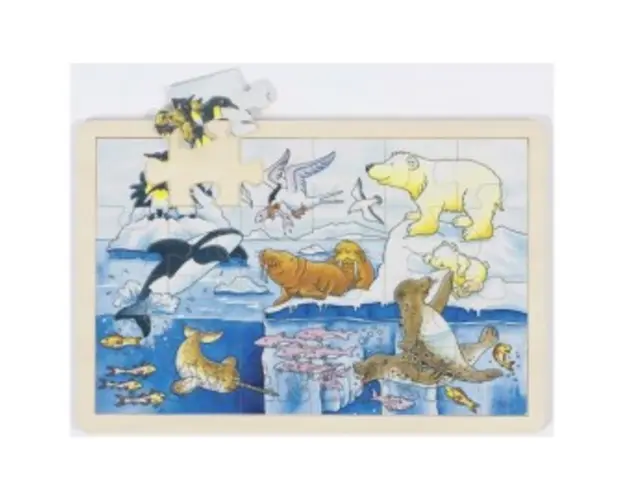 Puzzle Viata polara Puzzle din lemn cu 24 piese in care vei intalni ursi polari, pinguini si alte vietuitoare polare. Placa nu este imprimata. Dimensiuni produs: 30 x 20 x 0,8 cmNumar de piese: 24 Ambalaj: folie transparentaGreutate: 0.3 kg Produsul cu denumirea Puzzle Viata polara face parte din brandul Goki, se afla in categoria Puzzle si incastre si subcategoria