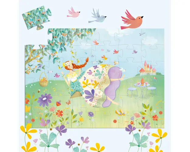 Puzzle Zana primaverii este un joc captivant si educativ, perfect pentru micutii care isi doresc sa isi dezvolte abilitatile cognitive si imaginatia. Acest puzzle dreptunghiular cu 36 de piese vine intr-o cutie decorativa cu silueta zanei, fiind usor de manevrat datorita pieselor mari. Dimensiunea puzzle-ului asamblat este de 42 x 30 cm, iar varsta recomandata este de +4 ani.Confectionat din hartie si carton certificate FSC®, puzzle-ul respecta reglementarile EN71&ASTM, asigurandu-se astfel ca este sigur pentru copii. Este un puzzle premium care poate fi realizat si refacut, oferind ore intregi de distractie si invatare. Ideal pentru a imagina si a spune povesti, acest puzzle este un cadou perfect pentru orice fetita.Avertisment: Contraindicat copiilor sub 3 ani! Poate contine piese mici, pericol de sufocare. Se recomanda supravegherea copilului de catre un adult in timpul jocului. Produsul cu denumirea Puzzle Zana primaverii, Djeco face parte din brandul Recaro, se afla in categoria North parade publishing si subcategoria Puzzle copii