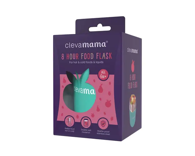 Recipient termic pentru hrana ClevamamaRecipient termic pentru mancare solida sau lichida cu capacitatea de 240 ml, pastreaza alimentele calde timp de 8 ore.Produsul este realizat din otel inoxidabil, Produsul cu denumirea Recipient termic pentru hrana Clevamama verde face parte din brandul Clevamama, se afla in categoria Animale si subcategoria