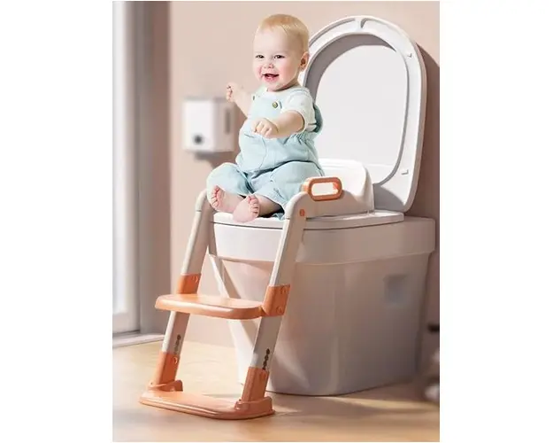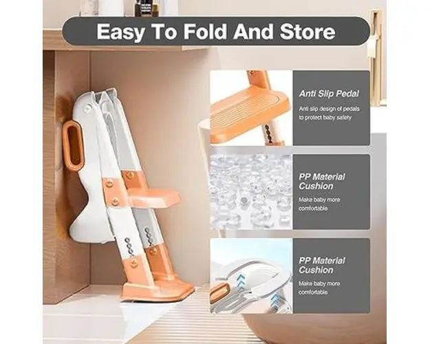 Reductor toaleta pliabil cu scara Little Mom Orange