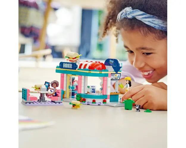 Data lansarii: 1 Ianuarie 2023 Copiii de 6 ani si mai mari isi pot inchipui multe povesti cu setul de constructie LEGO® Friends Restaurant in centrul orasului Heartlake (41728). Avand multe accesorii care sa inspire joaca creativa, ei isi pot imagina ca prepara sandvisuri sau ca sunt clienti ai restaurantului. Dotarile includ o fereastra de servire, scaune la exterior, precum si un joc electronic si un tonomat functional. Copiii pot folosi ingredientele pentru salata din frigider pentru a crea diferite tipuri de sandvisuri. Alte accesorii includ 2 bauturi, bani, 3 felii de paine pentru sandvisuri, un suport pentru servetele, un cos de gunoi si o placa de skateboard. Mai exista si o pisica siretata care adora sa viziteze restaurantul!Stimuleaza distractia la construitPregateste-te pentru o aventura de constructie usoara si intuitiva cu aplicatia LEGO Builder. Copiii pot mari si roti modelele 3D, pot salva seturi si isi pot monitoriza progresul.Bun venit la generatia urmatoare din Orasul HeartlakeCopiii isi fac prieteni si descopera locatii interesante in universul LEGO Friends, unde se pot bucura de joaca creativa si pot interpreta aventuri din viata reala. Produsul cu denumirea Restaurantul central din Heartlake face parte din brandul Coletto, se afla in categoria Jucarii outdoor si subcategoria Produse noi