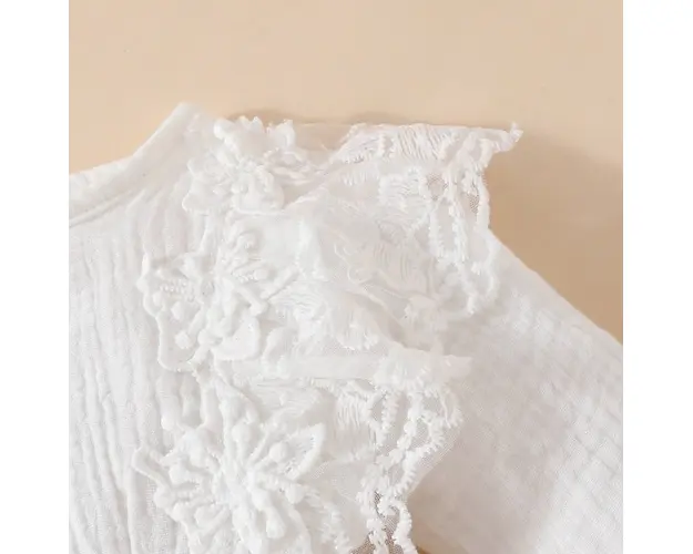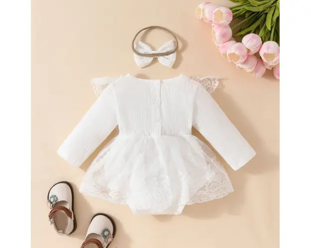 Marimi: 0-3, 3-6, 6-9, 9-12, 12-18 luni Material: 95% bumbac, 5% polyester Rochita body alba din finet, cu manecute lungi, cu danteluta si cu fustita din tulle brodata pe margini aplicata. Se inchide cu capse intre picioruse. Contine si bentita asortata. Pantofiorii din imagine sunt cu titlu de prezentare si nu sunt inclusi in pret. Produsul cu denumirea Rochita body alba din finet - Gorgeous face parte din brandul Eurobaby, se afla in categoria Prepararea hranei si subcategoria