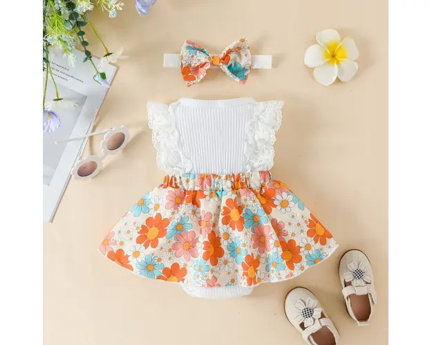 Marimi: 0-3 (70), 3-6 (80), 6-9 (90), 9-12 (100) luni Material: 95% bumbac, 5% spandex Rochita body alba, fara manecute, cu danteluta aplicata, cu fustita imprimata cu flori portocalii si turcoaz pe fond ivoire. Se inchide cu capse intre picioruse si este prevazuta cu o fundita aplicata in fata. Setul contine si bentita asortata. Pantofiorii din imagine sunt cu titlu de prezentare si nu sunt inclusi in pret. Produsul cu denumirea Rochita body alba - Flowers face parte din brandul Eurobaby, se afla in categoria Prepararea hranei si subcategoria