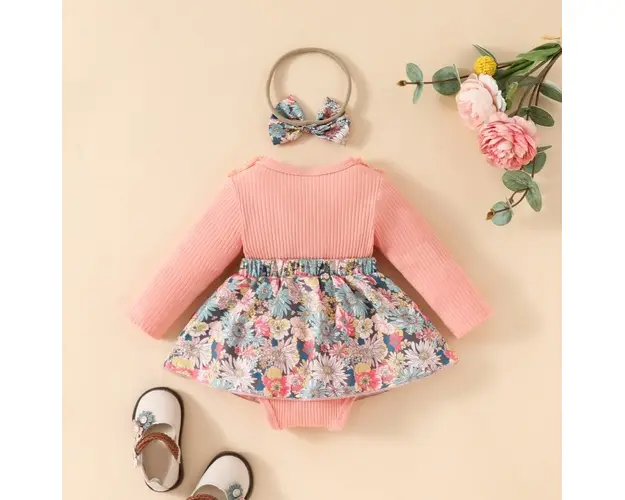 Marimi: 0-3, 3-6, 6-9, 9-12, 12-18 luni Material: 95% bumbac, 5% spandex Rochita body roz somon, cu manecute lungi, cu danteluta si cu fustita imprimata cu flori colorate aplicata. Se inchide cu capse intre picioruse si este prevazuta cu o fundita aplicata in fata. Setul contine si bentita asortata. Pantofiorii din imagine sunt cu titlu de prezentare si nu sunt inclusi in pret. Produsul cu denumirea Rochita body roz somon - Flowers face parte din brandul Eurobaby, se afla in categoria Prepararea hranei si subcategoria