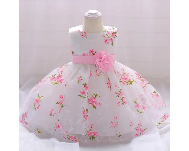 Marime: 0-3, 3-6, 6-9 luni Rochita eleganta cu tul imprimat cu floricele roz si frunzulite verzi cu sclipici discret. Este fara manecute si se inchide cu fermoar si cordon la spate, iar in talie are aplicata o floare roz din saten care este detasabila. Culoare: alba Este ideala pentru botez si pentru evenimentele deosebite din viata micutelor domnisoare. Material: 65% polyester, 35% vascoza Produsul cu denumirea Rochita ocazie - Pink flower face parte din brandul , se afla in categoria Tetine si subcategoria