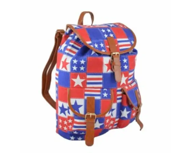 Rucsac urban Flag. Material textil cu imprimeu steag unionist. Are un compartiment interior, din poliester, prevazut pe lateral cu un buzunar cu fermoar. Are 2 buzunare exterioare. Bretele, barete, curele, snur inchidere sac, maner, borduri din piele ecologica. Maner fix. Bretele reglabile. Barete buzunare cu catarame metalice si capse magnetice. Dimensiune: 34 x 40 x 15 cm. Produsul cu denumirea Rucsac urban Flag Union Jack - LaRue face parte din brandul Larue, se afla in categoria Rucsaci si subcategoria