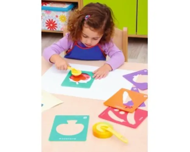 Sabloanele sunt realizate din material plastic si sunt utile pentru a realiza adevarate opere de arta folosind o varietate de tehnici. • 6 bucati• Dimensiuni:. 15 x 22 cm Produsul cu denumirea Sabloane legume face parte din brandul Moje bambino, se afla in categoria Masute pentru copii si subcategoria