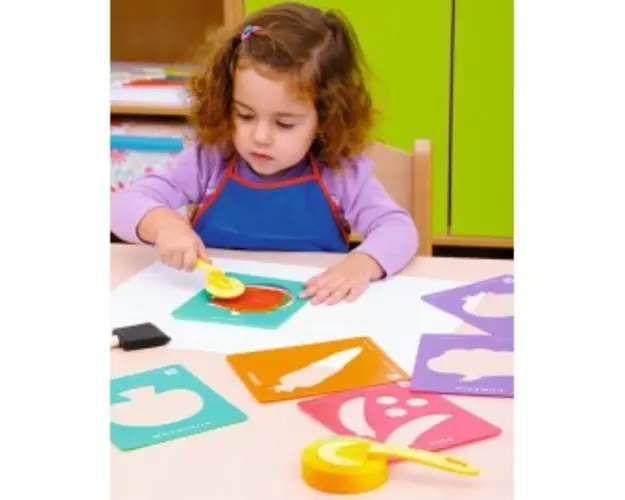 Sabloanele sunt realizate din material plastic si sunt utile pentru a realiza adevarate opere de arta folosind o varietate de tehnici. • 6 bucati• Dimensiuni:. 15 x 22 cm Produsul cu denumirea Sabloane legume face parte din brandul Moje bambino, se afla in categoria Masute pentru copii si subcategoria