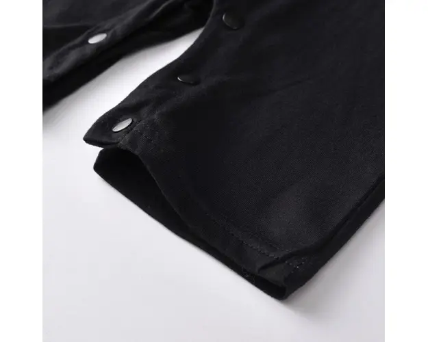 Marimi: 12, 18, 24 luni Bumbac 100% Salopeta pentru bebelusi din bumbac, fara botosei, alba in partea de sus, se inchide cu capse pe mijloc, cu vestuta gri cu picatele albe aplicata si cu papion asortat. Pantalonii sunt negrii si se inchid cu capse intre picioruse. Produsul cu denumirea Salopeta baietei cu vestuta aplicata si papion face parte din brandul Eurobaby, se afla in categoria Barbie si subcategoria