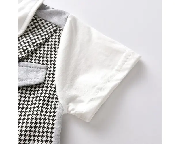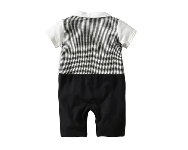 Marimi: 12, 18, 24 luni Bumbac 100% Salopeta pentru bebelusi din bumbac, fara botosei, alba in partea de sus, se inchide cu capse pe mijloc, cu vestuta gri cu picatele albe aplicata si cu papion asortat. Pantalonii sunt negrii si se inchid cu capse intre picioruse. Produsul cu denumirea Salopeta baietei cu vestuta aplicata si papion face parte din brandul Eurobaby, se afla in categoria Barbie si subcategoria