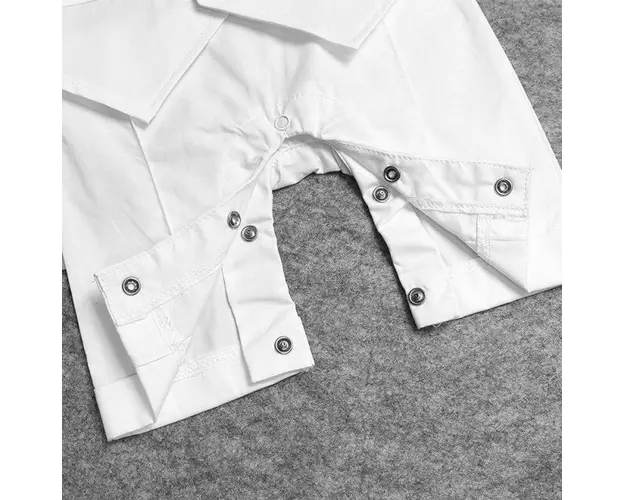 Marimi: 3-6, 6-9, 9-12, 12-18, 18-24 luni Material: 95% bumbac, 5% elastane Salopeta eleganta pentru bebelusi, fara botosei, cu vestuta aplicata. Este prevazuta cu un papion gri care ofera un plus de eleganta. Se inchide cu nasturei in fata si capse intre picioruse. Culoare: alb Produsul cu denumirea Salopeta eleganta alba face parte din brandul Eurobaby, se afla in categoria Barbie si subcategoria
