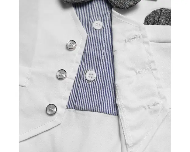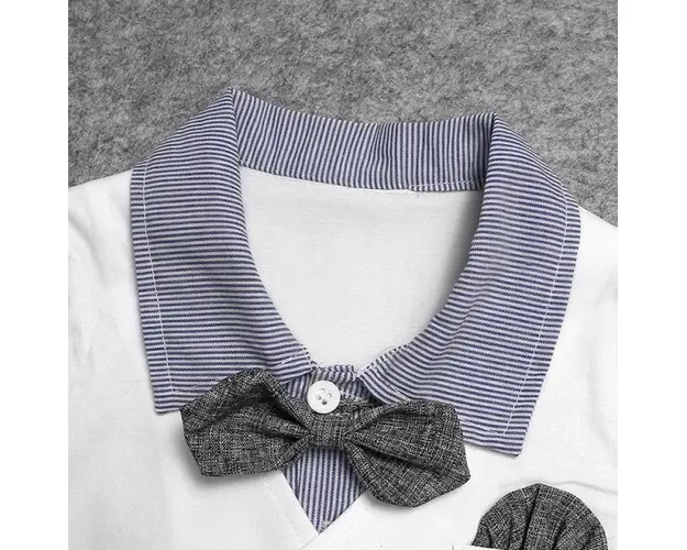Marimi: 3-6, 6-9, 9-12, 12-18, 18-24 luni Material: 95% bumbac, 5% elastane Salopeta eleganta pentru bebelusi, fara botosei, cu vestuta aplicata. Este prevazuta cu un papion gri care ofera un plus de eleganta. Se inchide cu nasturei in fata si capse intre picioruse. Culoare: alb Produsul cu denumirea Salopeta eleganta alba face parte din brandul Eurobaby, se afla in categoria Barbie si subcategoria