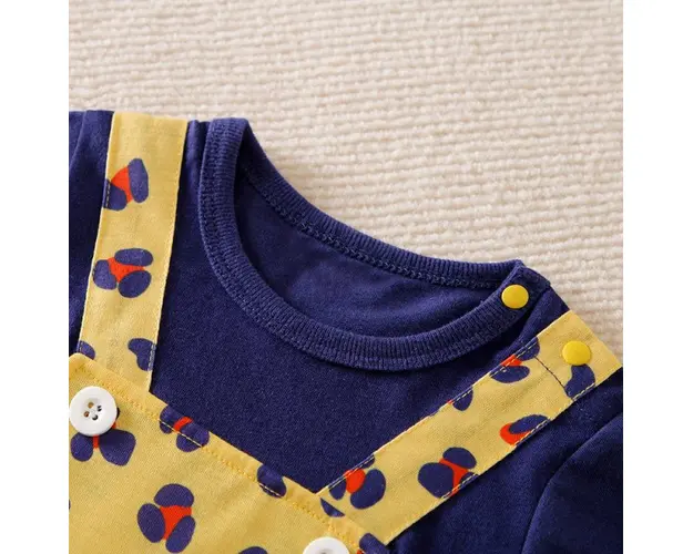 Marimi: 0-3 (59), 3-6 (66), 6-9 (73), 9-12 (80), 12-18 (90), 18-24 (100) luni Material: 100% bumbac Salopeta pentru baietei, cu maneca scurta si pantaloni scurti, se inchide cu capse pe umar si intre picioruse. Este imprimata in forma de tigrisor. Culoare: galben cu bleumarine Pantofiorii din imagine sunt cu titlu de prezentare si nu sunt inclusi in pret. Produsul cu denumirea Salopeta pentru baietei - Tigrisor face parte din brandul Eurobaby, se afla in categoria Prepararea hranei si subcategoria