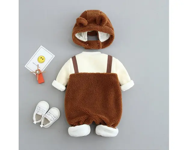 Marimi: 3-6 (66), 6-9 (73), 9-12 (80), 12-18 (90) luni Salopeta pentru baietei, din blanita, dublata pe interior cu polar, prevazuta cu gluga detasabila, in forma de ursulet. Se inchide cu capse pe umar si intre picioruse. Culoare: ivoire cu maro Pantofiorii din imagine sunt cu titlu de prezentare si nu sunt inclusi in pret. Produsul cu denumirea Salopeta plusata dublata cu polar - Ursulet face parte din brandul , se afla in categoria Tampoane de san si subcategoria