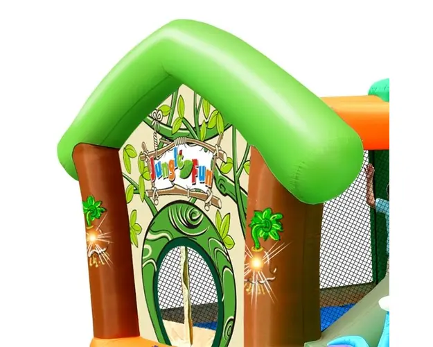 Spatiu de joaca gonflabil pentru sarit. Spatiul de joaca este gata de folosit in maxim 2 minute si este conectat in permanenta la un compresor de aer. Materialele folosite sint de o calitate foart Produsul cu denumirea Saltea gonflabila Happy Hop Jungle face parte din brandul Happy hop, se afla in categoria Jucarii magnetice si subcategoria