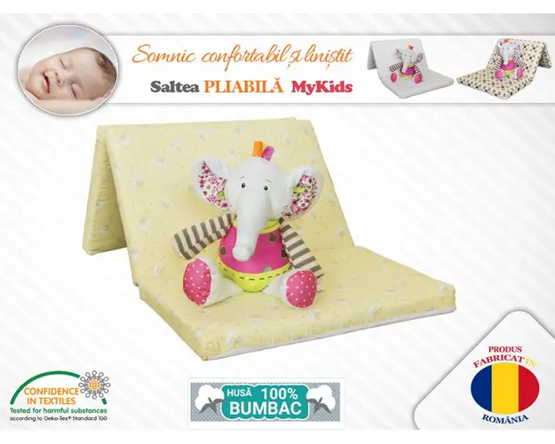 Salteaua pliabila MyKids este confectionata din materiale de calitate. Aceasta saltea este multifunctionala, avand o utilitate larga, precum- fotoliu pentru relaxare,- salteluta de joaca,- salteluta p Produsul cu denumirea Saltea pliabila copii spuma poliuretanica (burete) galbena face parte din brandul Mykids, se afla in categoria Costume carnaval copii si subcategoria