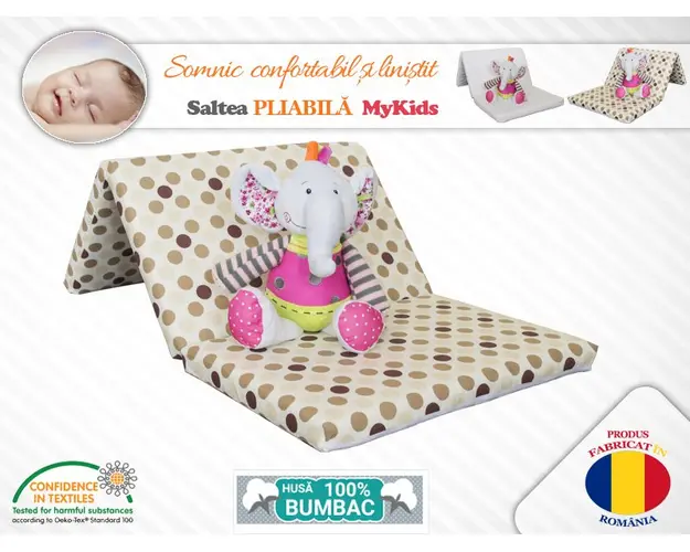 Salteaua pliabila MyKids este confectionata din materiale de calitate. Aceasta saltea este multifunctionala, avand o utilitate larga, precum- fotoliu pentru relaxare,- salteluta de joaca,- salteluta p Produsul cu denumirea Saltea pliabila copii spuma poliuretanica (burete) maro face parte din brandul Mykids, se afla in categoria Costume carnaval copii si subcategoria