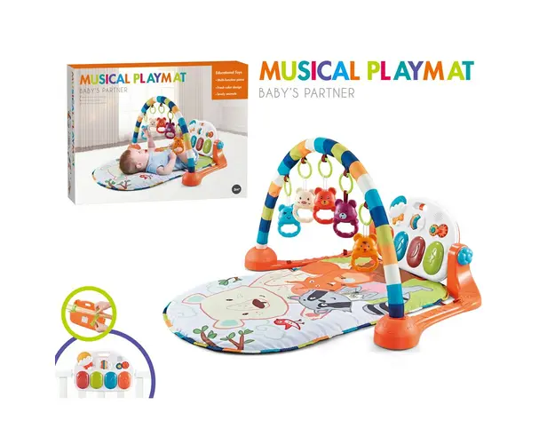 Caracteristici: Salteluta de activitati poate fi folosita in 3 moduri: pe spate, pe burta sau asezat Cel mic se poate intinde dupa jucariile care pot fi agatate de arcada sau se poate juca cu pianul Pianul poate fi detasat de la salteluta de activitati si poate fi folosit si in patut, in carucior, etc. Salteluta de activitati Musical Playmat stimuleaza dezvoltarea inteligentei copiilor, coordonarea, recunoasterea formelor si a culorilor Necesita 3 baterii AA/LR06 (Nu sunt incluse in set) Setul contine: 1 salteluta de activitati 1 pian detasabil 5 animalute colorate Produsul cu denumirea Salteluta de activitati cu pian Musical Playmat face parte din brandul , se afla in categoria Plusuri bebelusi si subcategoria